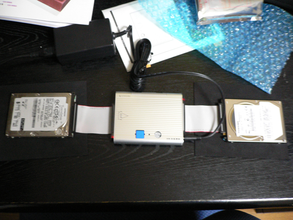 左は買ったときにPCの中にはいっていたデーターをコピーしてあるハードディスク。