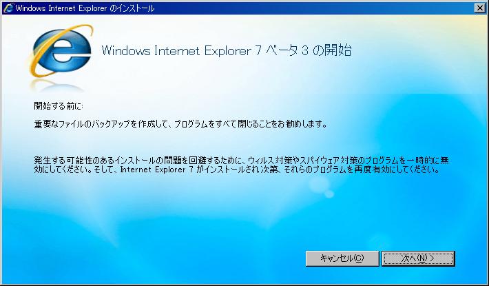 ※IE7はベータ版のためウィンドウズは保証を行っておりません。そのことをふまえ、インストールしてください。